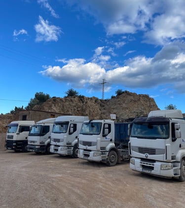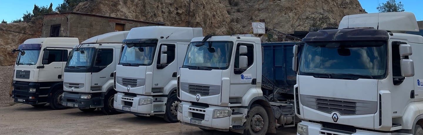 Cabezas tractoras y semiremolques que incluyen bañeras para el transporte de áridos, materiales de excavación y residuos no peligrosos y bañeras reforzadas para el transporte de escollera en Valencia.